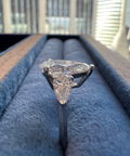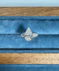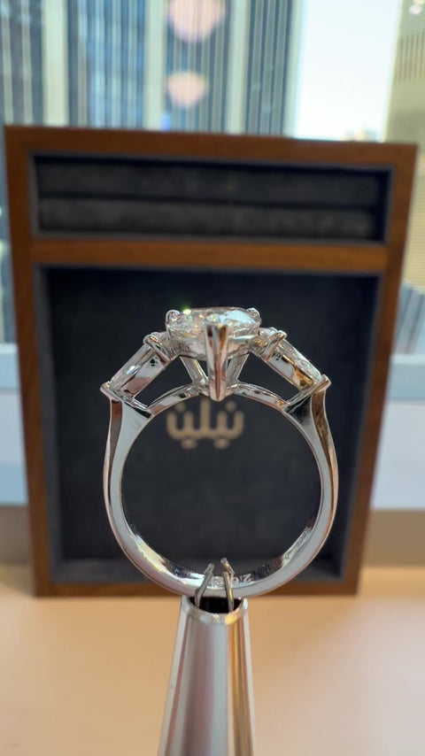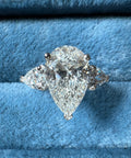 خاتم ثلاثي من ألماس مختبري مرصع بماسة واحدة كبيرة مركزية بقَطع كمثرى، بحجم 2.06 قيراط، بنقاء VS1، لون E. وماستين جانبيتين بقَطع كمثرى بحجم 0.3 قيراط لكل واحدة ، مصنوع من الذهب الأبيض عيار 18 قيراط. مع شهادة.